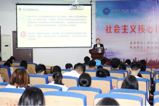 为帮助2025级新生筑牢正确价值根基,深刻把握国家安全与个人成长的内在关联,外国语学院于10月15日在A05-108报告厅举办“社会主义核心价值观大讲堂”活动。本次讲座由外国语学院党委副书记沈敬萍主讲,聚焦“国家安全”核心主题,通过系统阐释与案例分析,为新生夯实维护国家安全的思想基石,切实引导其牢固树立“国家安全无小事”的责任意识。