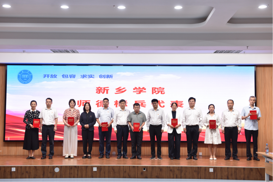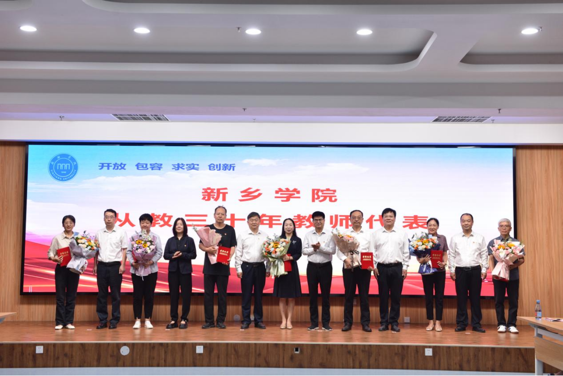 与会领导宣读了上级及学校表彰文件,并为河南省教育系统先进集体和先进个人、河南省教育系统2025年度教学技能竞赛获奖教师、河南省青年骨干教师、新乡市优秀教师、新乡学院“优秀共产党员”“优秀党务工作者”“师德标兵”“师德先进个人”以及“从教30年”教师代表、2025年度河南省科技特派员服务团、学校科研工作优秀组织单位、基础教育先进集体、学校先进基层党组织颁奖。